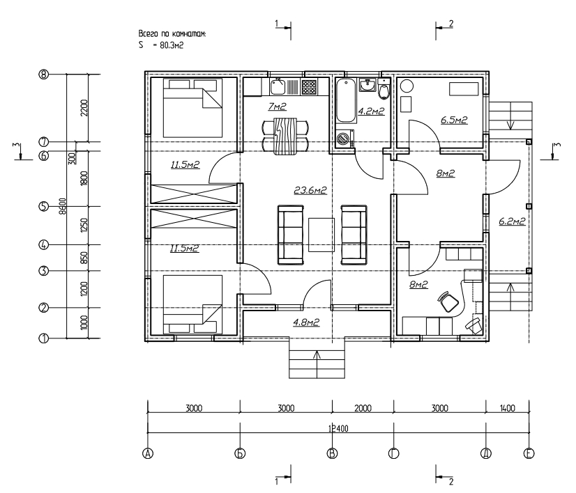 - Балки пола из бруса 100х200мм с шагом 600мм между ними.