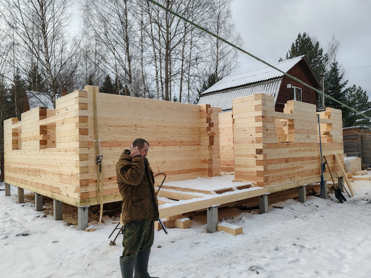 - Сборка дома происходит на березовые нагеля и пружинный узел «Сила».